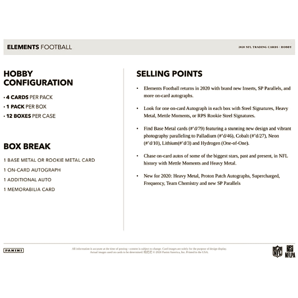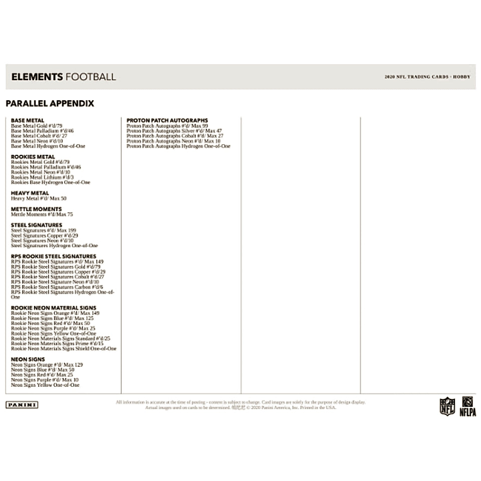 Elements Football Returns In 2020 With Brand New Inserts, SP Parallels & More On-Card Autographs.