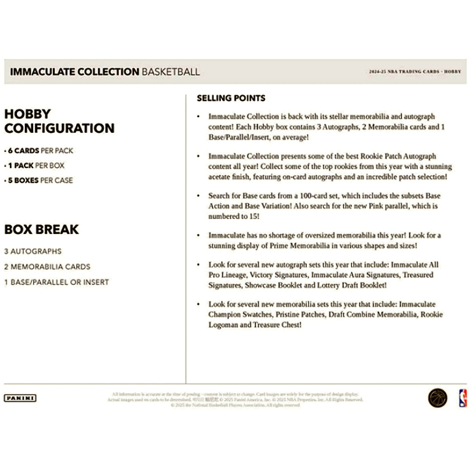 2024-25 Panini Immaculate Basketball Hobby Box